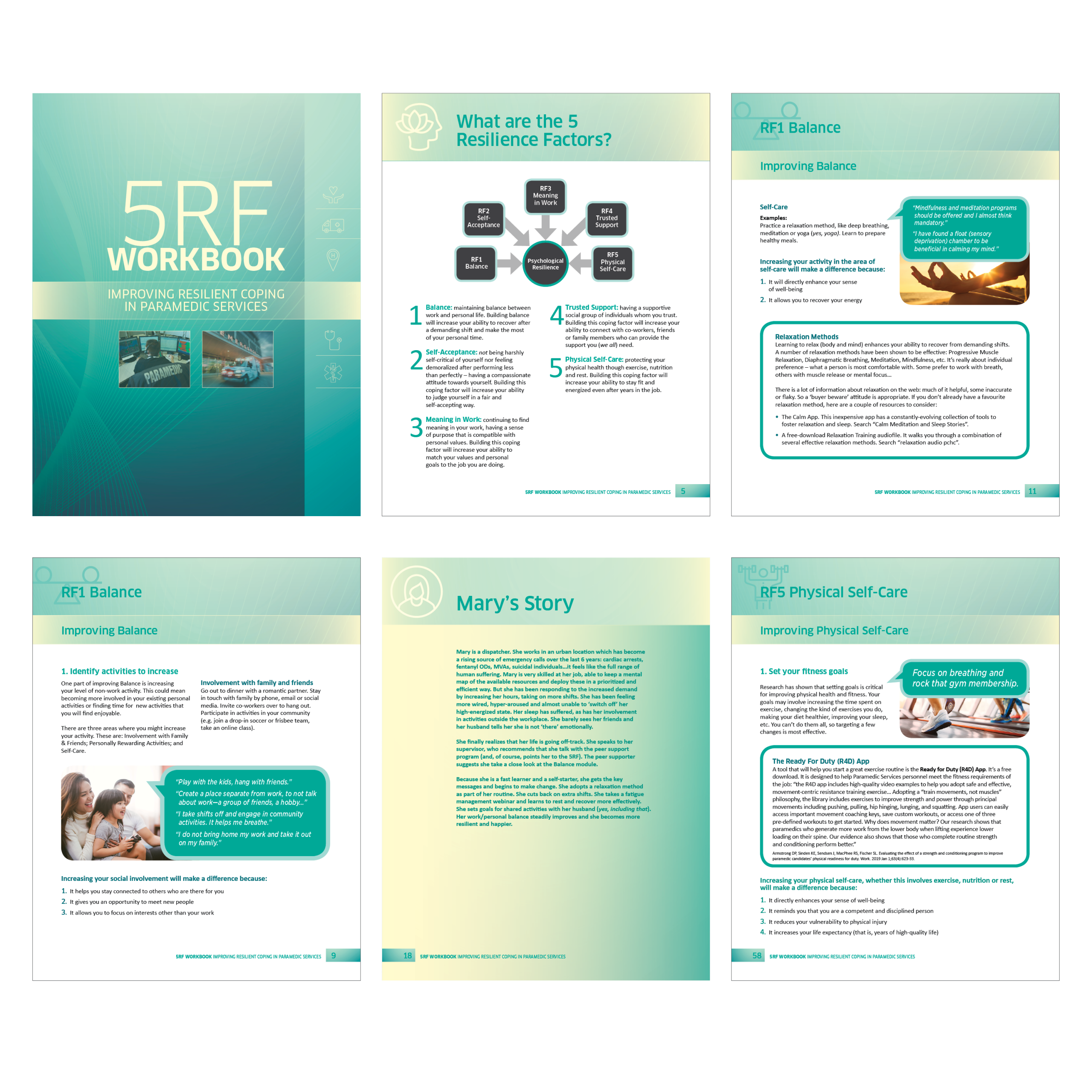 Designed and produced for Vancouver Psych Safety Consulting, this is a workbook to be used by paramedics to provide information and tools around coping skills and mental health, through a visually calm and appealing design and layout format.