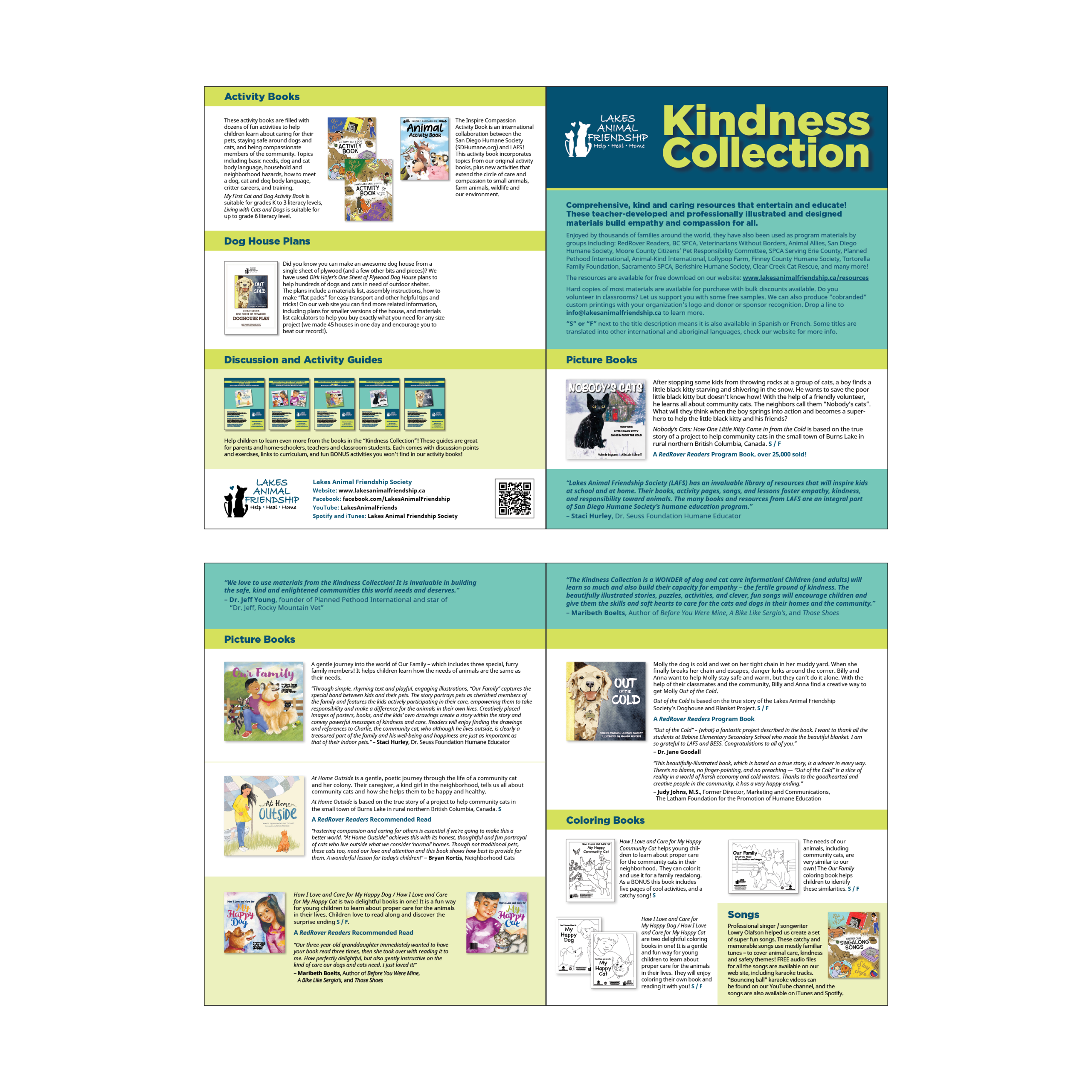 A newsletter styled brochure promoting the various story books, colouring books, activity books and guides that the organization uses to promote and teach animal welfare that can be found on their website for distribution.